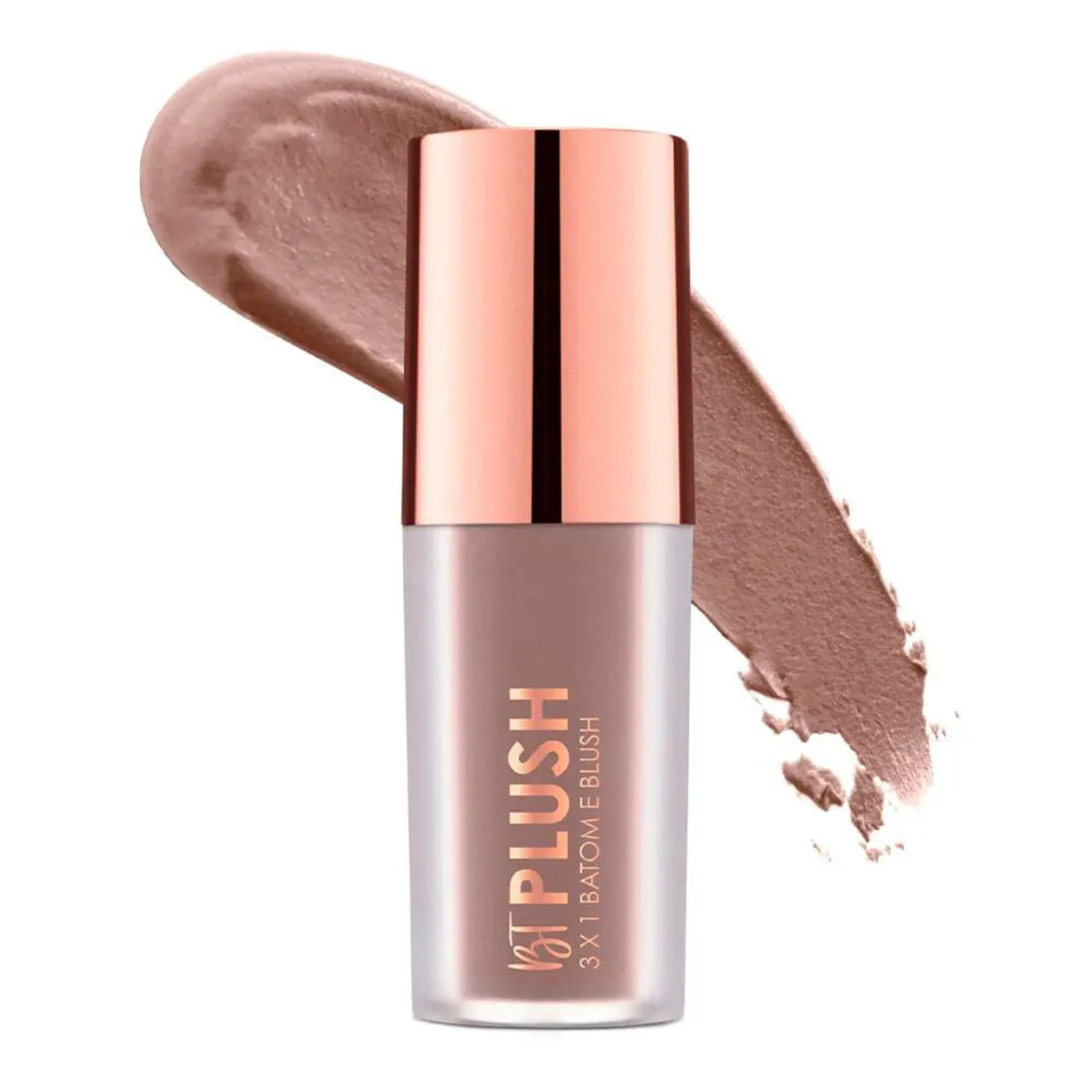 O BT Plush 3x1 Batom, Sombra e Blush é um produto multifuncional. Possui textura mousse, aveludada, extremamente confortável e acabamento semi matte. Formulado com manteiga de Shorea, um componente muito luxuoso e exótico, extraída da semente de uma árvore originária do Sul da Ásia. A manteiga de Shorea se funde na temperatura da pele, promovendo um sensorial rico e emoliente. É altamente nutritivo, previne o ressecamento e promove a renovação da pele devido a sua grande quantidade de ômega 9. Modo de uso como batom: aplicar diretamente nos lábios limpos e secos. Contorne a linha exterior dos lábios com a ponta do aplicador e então, preencha em uma única aplicação.