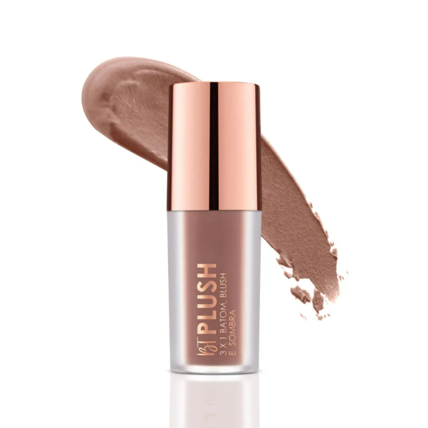 O BT Plush 3x1 Batom, Sombra e Blush é um produto multifuncional. Possui textura mousse, aveludada, extremamente confortável e acabamento semi matte. Formulado com manteiga de Shorea, um componente muito luxuoso e exótico, extraída da semente de uma árvore originária do Sul da Ásia. A manteiga de Shorea se funde na temperatura da pele, promovendo um sensorial rico e emoliente. É altamente nutritivo, previne o ressecamento e promove a renovação da pele devido a sua grande quantidade de ômega 9. Modo de uso como batom: aplicar diretamente nos lábios limpos e secos. Contorne a linha exterior dos lábios com a ponta do aplicador e então, preencha em uma única aplicação.